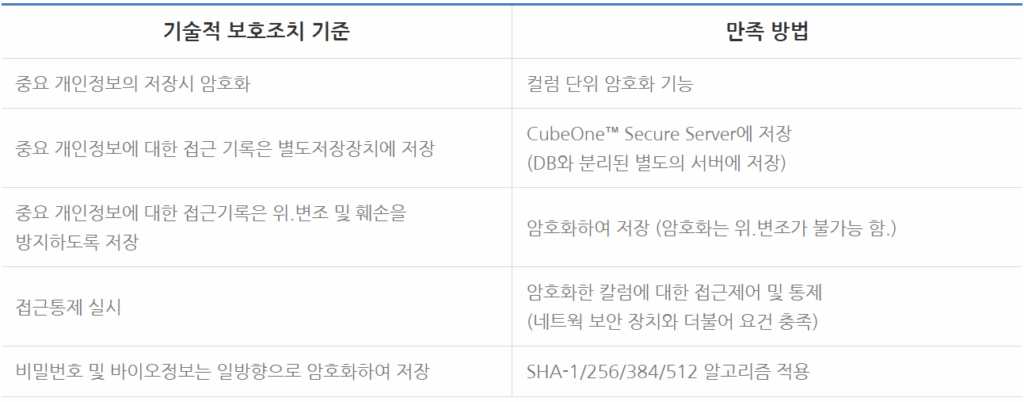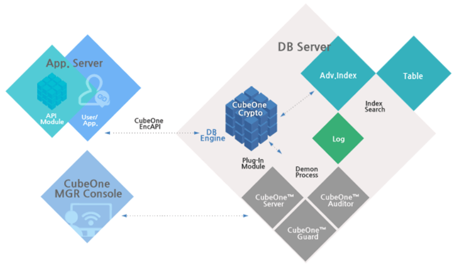 CubeOne™은 중요정보(개인정보)가 저장된 대용량 DB에 적용하기에 알맞은 매우 독창적인 구조를 가지고
